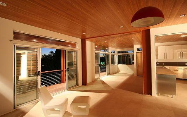 This apartment with nice shades of blue and a beautiful bathroom will help you to relax after work.